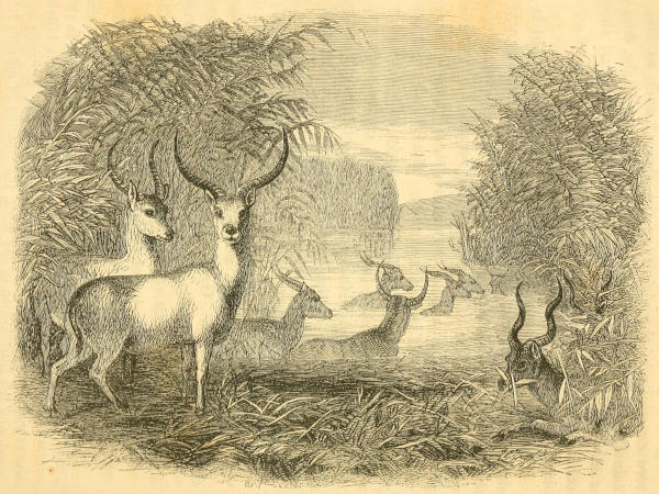 | Departure for Libèbé.—The Canoe.—The Lake.—Reach the Teoge.—Adventure with a Leché.—Luxurious Vegetation.—Exuberance of animal Life.—Buffaloes.—The Koodoo.—His Haunts.—Pace.—Food.—Flesh.—Hide.—Disposition.—Gregarious Habits.—The Chase | 456 |