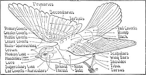 The numbers and names used in this book are those adopted by the American Ornithologists’ Union, and are known both in this country and abroad. The lengths given are averages; our small birds often vary considerably and may be found either slightly larger or smaller than those quoted.