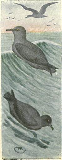 This bird has the two phases of color similar to the last. The two central tail-feathers are longer and more pointed, projecting about four inches beyond the others. All of the Jaegers have grayish blue legs with black feet, and brown eyes.