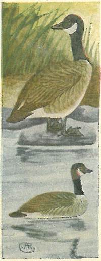In shape and motions the loons very much resemble the grebes, except in size, being much larger. The common loon is the most beautiful of them all, having a velvety black iridescent head with slashes of white on the throat and neck and spots of white on the wings and back.