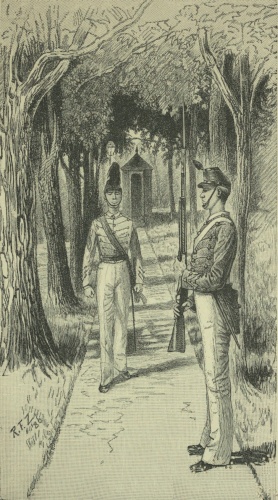 Some time during the night he had packed up such things as he could carry and stolen quietly away. A sentry said he saw a young man in civilian dress, with a bag in his hand, going down towards the south dock about 11 o'clock. He boarded a night train at Cranston's Station, and that was all. It proved the easiest settlement of [262]a vexed case. The court-martial turned its attention to Doyle, the deserter, and Doyle pleaded guilty, for his was a case that was still triable because he had absented himself ever since the desertion occurred. Throwing himself upon the mercy of the court, the boy made his statement. He said that one evening in camp, three summers back, Mr. Jennings was sentry on Number Three, and told him he wanted him, Doyle, to do an errand. Cadets often employed him, and paid him money to carry notes, or to buy cigars, or the like. It was arranged that he was to be there, back of Company A, about ten minutes before tattoo, and, going there, he found a rifle leaning against a tree, and this Mr. Jennings bade him carry out to a point near the east edge of the dump hollow, and look there in the weeds, where he would find, half hidden, another one. The drummers were allowed to cross the post of Number Three without question. He had no difficulty in finding and fetching in the rusty rifle, and left the new rifle in its place, as he had been told, supposing that it was only some trick they were playing. Mr. Frazier was there, inside the sentry's post, on his return, and received from him the rusty gun. That night, later, when he heard the adjutant and the cadet captains talking, he saw the matter was serious and got scared, and went out next day and "found," as [263]he expressed it, what he had left there, and carried it to the adjutant. He was closely questioned, got more frightened, and wanted to tell all he knew; but Jennings swore he would be tried and sent to jail as a thief, and warned him the only safety lay in secrecy. Mr. Frazier gave him ten dollars then to buy his silence, and promised him more; but when Jennings was put in arrest and court was ordered to convene, both Jennings and Frazier were badly scared, and told him there was no hope for him at all if it came to trial, as they'd have to testify to his part in the thing, and that meant penitentiary. Then old Mr. Frazier came and had a talk with him down at the Falls: told him he must get away to save himself, gave him fifty dollars, and promised him employment and immunity from arrest if he would go at once. Doyle told Reilly, another of the boys, of his trouble, and Reilly said he'd better go. He got away all right, but the place Mr. Frazier gave him in Pennsylvania among the miners was too hard work; he couldn't stand it, and asked for more money, and until Frazier died he paid him. Then there was no way but to turn to the cadet, through Reilly, saying he was starving, and would have to come and give himself up and tell all about how the old man had bribed him to desert. Then all of a sudden he was nabbed, and that ended it. No! Cadet [264]Frazier had never suggested desertion. It was all Mr. Jennings and the father.