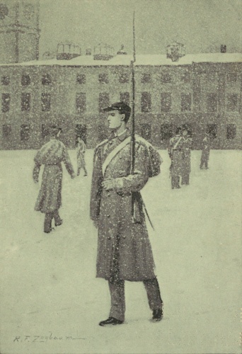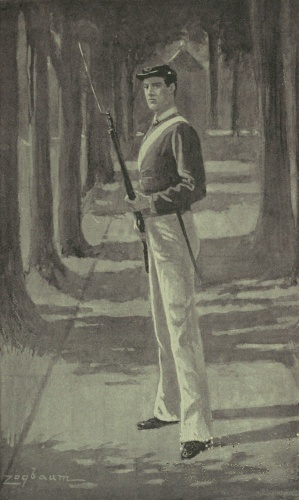 And so the humbled fellow kept his own counsel, hearing some pretty hard things occasionally, but saying nothing. The former terror of the plebes in nowise meddled with them now. Mourning for his father was sufficient reason for [280]not attending the hops which, despite his managership, Pops himself very frequently failed to visit. It was lonely work going on guard as the sole representative of an absent class, but Frazier made no remonstrance. There were little points in which he could not overcome the slothful tendencies of his earlier days. He was sometimes late or unprepared, but he took his reports without a murmur and walked post like a man.