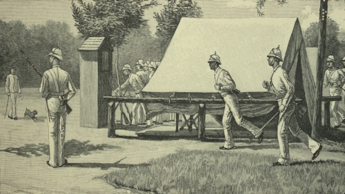 One week later, and the 28th of August was at hand. Camp was crowded, for the noisy furlough-men returned at noon, and were bustling about, making absurd pretence at having forgotten how to get into their "trimmings," and calling for some generous Fourth-hearted Class man to come and aid them. Visitors were swarming all over the post. Hosts of pretty girls had come for the closing hop, and the hotels were crowded to suffocation.