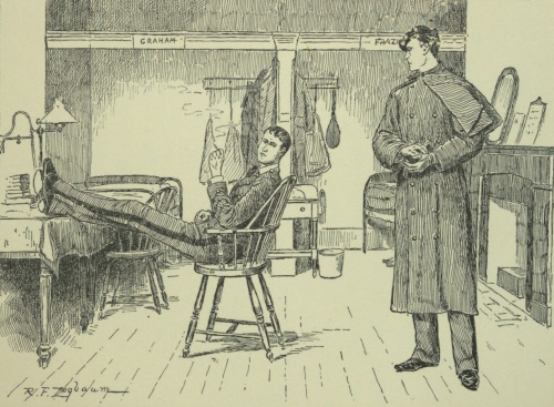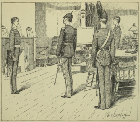 And the awful person was Jennings, who, shunned like a pariah by the corps, was again awaiting trial by court-martial as soon as Frazier should be able to testify. For days it looked as though Benny never could appear before an earthly court, and that this case, like the other, must go by default. So long as it appeared that the fever would prove fatal, Jennings kept up his air of bravado and confidence. The evidence of Graham and Ames, the first to reach the scene of the assault, would be sufficient to convict him of that offence, but even they could prove nothing beyond a personal row, said he. It was fully understood, however, that back of all this trouble was the old case of Benny's plebe camp, and that the assault on Graham when a [260]sentry, the stealing of Graham's rifle, and the desertion of Musician Doyle were all matters in which Jennings was a prime mover; and though now "outlawed by the statute"—more than two years having passed since the occurrence of these offences, during which time the alleged offender had in no wise sought to secrete himself from military justice, and therefore a case no longer triable by court-martial—there is no two-year limit to the contempt of the corps of cadets. They could send him to Coventry at any time, and even though he were graduated it might be impossible to obtain a commission.