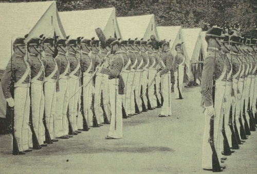 Connell, to be sure, was one of the gallants of the corps all the summer through, and to Geordie's keen delight his Badger chum seemed to be universally popular in society, and though their tents were at opposite flanks, as were their posts in line of battle, they were seldom far apart when off duty. The two, with Benton, formed what Ames sometimes referred to as the Cadet Triumvirate. Benton made a capital adjutant, and the parades attracted crowds of visitors that, as August evenings grew longer, could hardly be accommodated.