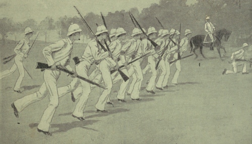 The summer wore on. Up with the dawn, out in the sun and the breeze from morn till night, hastening from one brisk martial exercise to another, sometimes in saddle commanding a platoon in the roar and dash of battery drill, sometimes a division in the school of the battalion, sometimes at the great guns of the sea-coast battery, waking the echoes of the Highlands with the thunder of their report and the shriek of the shells towards Target Point, sometimes on the firing-line of the skirmishers, Geordie seemed to broaden with every day, and as first captain he was vigilance itself. "Even in Rand's day you never saw better order or discipline in the hall or in the ranks," said Connell, "and the best of it is, the battalion wants to do as he wishes."