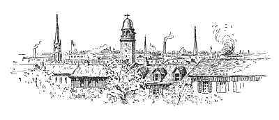 The taller boy, a curly-headed, dark-eyed fellow of sixteen, whose long legs had led to his school name of Snipe, turned from the contemplation of an endless vista of roofs, chimneys, skylights, clothes-lines, all swimming in an atmosphere of mist, smoke, and rain, and glanced back at the book-laden table.