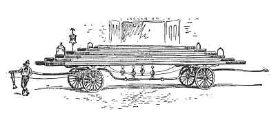 A curious thing to look back upon is the old volunteer fire department of New York as it was forty years ago. No horses, no fire-boats, few steamers, no telegraph alarm-boxes, only a great array of practically go-as-you-please companies, averaging forty or fifty men apiece, scattered all over the inhabited parts of the island from Harlem to the Battery. Sixty of these organizations, there or thereabouts, were hose companies, each manning a light, high-wheeled, fancifully painted carriage with its hose-reel perched gracefully above the running-gear, decked out with fancy lamps and jangling bells,—a carriage so light that a boy could start it on the level and a dozen athletic men could make it fairly spin over the paved streets. Then there were fifty engine companies, all but two or three specially favored bands "tooling" hand machines, some of the old "double-deck" Philadelphia pattern, some with long side levers,[21] "brakes" they called them; others still with strange, uncouth shapes, built by some local expert with the idea of out-squirting all competitors. Down in Centre Street was the heavy apparatus of the Exempt Company, only called upon in case of fires of unusual magnitude. Near by, too, was stored a brace of what were then considered powerful steamers, brought out only on such occasions; but two companies that wielded strong political influence proudly drew at the end of their ropes light-running and handsome steam fireengines, and these two companies, Americus 6,—"Big Six" as they called her,—and her bitter rivals of Manhattan 8, were the envied of all the department. Add to these some nineteen hook and ladder companies that ran long, light, prettily ornamented trucks, and you have the New York fire department as it was just before the war. Famous men were its chiefs in those days, and the names of Harry Howard and John Decker, of Carson and Cregier, were household words among the boys at Pop's, most of whom were strong partisans of some company on whose speed and prowess they pinned their faith. Strange, indeed, to-day seems the system by which fire alarms were communicated. There were no electric bells, no gongs, no telephones in the various engine-houses, which were scattered all over the town, generally in groups of two, an engine and a hose company being "located" side by side, though a large number occupied single houses. On the roof of the old[22] post-office at Nassau Street, in a huge frame-work at the rear of the City Hall, and in tall observation-towers of iron tubing or wooden frame, placed at convenient points about the city, were hung big, heavy, deep-toned bells that struck the hour at noon and nine at night, but otherwise were used exclusively for the purpose of giving alarms of fire. The city was divided into eight districts, and the sounding of the tower bells of any number from one to eight, inclusive, meant that a fire had been discovered within the limits of that district, and all companies designated for service therein must hunt it up and put it out. The seventh and eighth districts divided the lower part of the city, a little below Canal Street, evenly between them. Then, as the city broadened there, the great, far-spreading space between the East and North Rivers, south of Twenty-second Street, was parcelled off into the third, fourth, fifth, and sixth districts, beginning from the west. These were quite narrow at the south, but flared out north and eastward. Above them, on the east and west sides of the city respectively, lay the first and second districts, the former extending almost to Harlem, which had on Mount Morris its own bell-tower and at its foot a little department of its own. Night and day a single watcher was perched in the glass-enclosed lookout at the summit of each lofty tower, his sole communication with the world below being a speaking-tube to the engine-house at the base and a single wire that connected his[23] "circuit" with the main office at the City Hall, a circuit so limited in its possibilities that it could only administer a single tap at a time upon the tiny gong-bell over the watcher's desk, and finally the big, booming bell that, hanging midway down in the lofty structure, was yet so high above the neighboring roofs and walls that its sound bellowed forth in unimpeded volume. It was struck by a massive swinging hammer, worked by a long steel lever aloft in the watch-tower, the entire apparatus being the design, as were some of the strange-looking engines, of ex-Chief Carson, and one of the greatest treats that Pop's boys could possibly have was to be piloted of a wintry Saturday afternoon or summer evening, by one of their number who had the open sesame, up, up the winding stairway, up past the huge, silent monster that hung midway. (You may venture to bet they wasted no time there, but scurried past him, full tilt, lest an alarm should come at the instant and he should suddenly boom forth and stun them with his clamor.) Once well past him, they breathed freer, if harder, for the climb was long, and at last, tapping on a little trap-door, were admitted to the sanctum at the summit, and could gaze in delight and wonderment about them and over the busy, bustling world far, far beneath. Once well above the low ground of Canal Street, the city rose, and from the Hudson to the East River, along about the line of Spring Street, the ground was high, and here was established the inner row of[24] Gotham's picket guards against fire: three tall towers, one away over at Essex Market, on the far east side, guarding the sixth district; one on Marion Street, guarding the lower fourth and fifth; one over at McDougal Street, guarding the lower third. The next post to the northward was at Jefferson Market, on Sixth Avenue, a tall white wooden shaft that seemed to pierce the skies, so low were all the surrounding buildings, and from his eerie at its summit Jefferson's ringer watched over the upper third and fourth districts. The next to