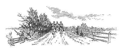 All night they plodded slowly on, twisting and turning through country lanes or bridle-tracks. Time and again they had to halt and scout, for the poor bewildered negro lost the way again and again, and when at last[288] morning dawned, they were not nine miles on a bee-line north of Sudley church, but were hopelessly far from Fairfax. And now the rain that always follows a heavy battle began to fall. They hid in the thicket all the hours till darkness came again, drowsing by turns. They hitched in and again pushed northward at nightfall, but the stars were hidden. There was nothing to guide them. They groped into another thicket and hid another day, the rain still pouring steadily. Snipe "shinned" up a tree and took the bearings of the farm-houses within sight; took heart because he saw no signs of scouting cavalry, everything being now afar off to the eastward along the main roads to Washington, and, turning his jacket inside out, after brief conference with Keating he stole away through the dripping thickets, and lurked about the nearest farm until he succeeded in making a negro hear his cautious signals. Money was potent and the major had plenty. The darky brought grain for the horses, and chickens, eggs, and milk, and that night guided them through many a devious way until within an hour of dawn they were again hidden in the thick woods, still farther to the northwest and away from the travelled roads. The nearest village now seemed eight or ten miles away. Before the negro left them he hunted up a friend to take his place. Ten dollars for his night's work! It was a fortune, and eagerly his successor sought to earn as much.[289]