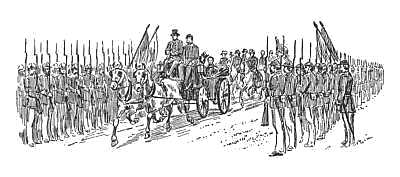Then Snipe shook hands with his old teachers again, poor, pallid Meeker's eyes filling with tears, and with John, the janitor, who grinned and writhed in ecstasy. Then he and Shorty came bounding down the stairs, and another shout went up from the school, and something like a sob rose in Shorty's throat as Lawton drew for the first time his beautiful sword, the gift of all the[320] classes, and, throwing his left arm about the "little 'un's" neck, held him in close hug one second, then bounded away to the post of the adjutant, his eyes too full to look back, his heart too full to speak. Once more the great regiment sprang into column of fours, the arms snapped up to the right shoulder, the band broke into a magnificent swinging quickstep, and the Fourth New England strode sturdily away to make its mark on many a field, its boy adjutant marching at the head of column. Many a long block it went before the last of Pop's boys dropped off and turned back, only to find that half-holiday had been declared in honor of the event of the day. Snipe and Shorty, big Damon and little Pythias, Mr. Lincoln's "long and short of it," had seen the last of the old school and school-days, with all their fun and frolic and their sad and solemn memories. The old First Latin went on to collegiate days minus its soldier boys and the little lamented Briggs. After all, there was aroused a bit of sympathy for him when the Hulkers were bought off in some mysterious way and never appeared for trial, when Brodrick was heard of as "living high" in Canada, and only the detestable butler was left to share the punishment with the rapscallion of the class. Some boys thought Hoover was so low that "even if he didn't steal he put Briggs up to it," and the school was furious at the thought of his being an officer in the regular army.