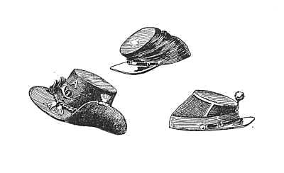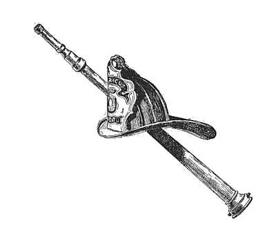 But on the shelf above were books by no means so scholarly and far more worn. There they stood in goodly array, Mayne Reid's "Boy Hunters," "Scalp Hunters," "The Desert Home," "The White Chief," flanked by a dusty "Sanford and Merton" that appeared to hold aloof from its associates. There, dingy with wear though far newer, was Thomas Hughes's inimitable "Tom Brown's School-Days at Rugby." There was what was then his latest, "The Scouring of the White Horse,"[12] which, somehow, retained the freshness of the shop. There were a few volumes of Dickens, and Cooper's Leatherstocking Tales. There on the wall were some vivid battle pictures, cut from the London Illustrated News,—the Scots Grays in the mêlée with the Russian cavalry at Balaklava; the Guards, in their tall bearskins and spike-tail coats, breasting the slopes of the Alma. There hung a battered set of boxing-gloves, and on the hooks above them a little brown rifle, muzzle-loading, of course. The white-covered bed stood against the wall on the east side of the twelve-by-eight apartment, its head to the north. At its foot were some objects at which school-boys of to-day would stare in wonderment; a pair of heavy boots stood on the floor, with a pair of trousers so adjusted to them that, in putting on the boots, one was already half-way into the trousers, and had only to pull them up and tightly belt them at the waist. On the post hung a red flannel shirt, with a black silk neckerchief sewed to the back of the broad rolling collar. On top of the post was the most curious object of all,—a ribbed helmet of glistening black leather, with a broad curving brim that opened out like a shovel at the back, while a stiff, heavy eagle's neck and head, projecting from the top, curved over them and held in its beak an emblazoned front of black patent leather that displayed in big figures of white the number 40, and in smaller letters, arching over the figures, the name, Lady Washington. It was the fire-cap of a famous engine[13] company of the old New York volunteer department,—a curious thing, indeed, to be found in a school-boy's room.