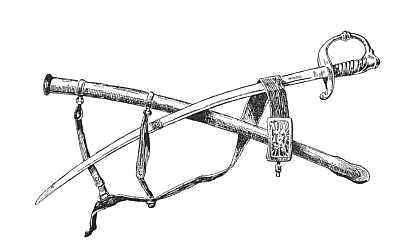 All this having been duly reported, and Beach, Winthrop, and one or two senior officers having been in consultation, this strange meeting was decided upon, and, not knowing why they were bidden, Snipe and Shorty found themselves one bright September morning in the anteroom of the provost-marshal's office. Beach and Winthrop were already there. It was just one week after the arrest of the general's orderly by the patrol and his incarceration by order of the lieutenant of the guard. There was a moment of greeting and quiet chat. Then the boys were shown into a side room,[311] and there sat Keating and Desmond. Beach called to the latter. "I wish you to sit here with me close to the door and listen to every word spoken in the office during the next five minutes." Then he, too, seated himself. There was silence a moment or two, then a low-toned conference between the provost-marshal and Winthrop, and presently a door opened, a somewhat unsteady, clinking step was heard, and then a voice, at sound of which Snipe and Shorty started and looked into each other's faces, while Beach sat watching Desmond.