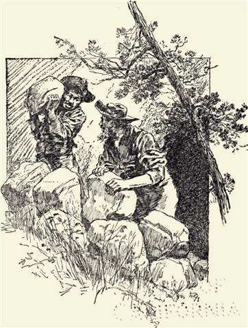 "Now, Jim, it won't be long before they will be showing around on all sides. Pile on a few more stones above that loophole that looks to the west. The next thing you know there'll be a head and a gun poked out from behind that shoulder of rock beyond you. I'll watch my side and keep a look on down the hill, too."