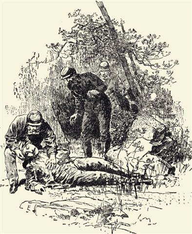 In ten minutes, supporting the fainting soldier as best they could, the detachment was marching rapidly westward.