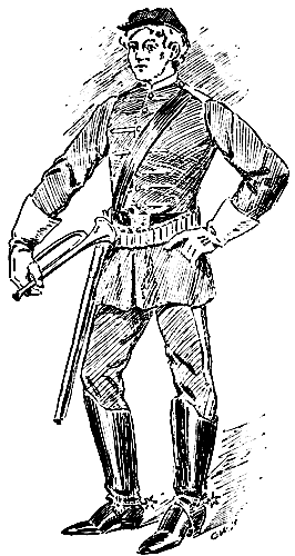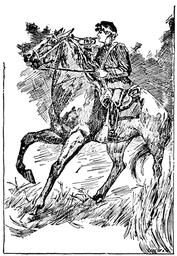 "Only twenty-nine men all told and a small boy," said Sergeant Dawson, who was forever trying to plague that little trumpeter. It was by no means fair to Fred Waller, either, for while he was somewhat undersized for his fifteen years, his carbine and his Colt's revolver were just as big[20] and just as effective as those of any man in the troop, and he knew how to use them, no matter how hard the "Springfield" kicked. He rode one of the tallest horses, too, and sat him well and firmly, notwithstanding all his furious plunging and "buckings," the day that Dawson slipped the thorny sprig of a wild rosebush under the saddle blanket.