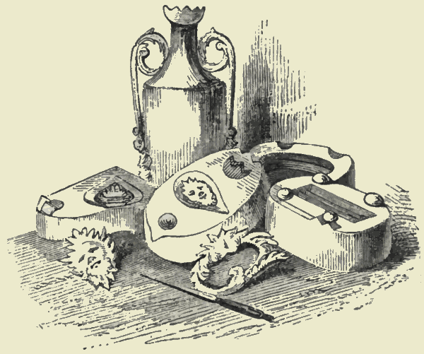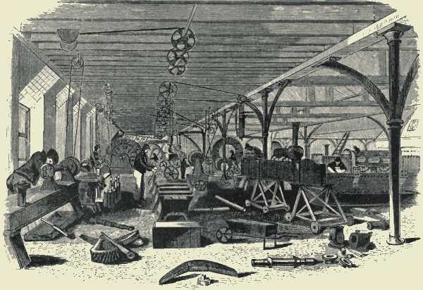 Within these few years American clocks have been extensively sold in this country. People would once have thought that the business of clockmaking in England would be at an end, if it had been predicted that in 1853 we should import, as we did, a hundred and forty thousand clocks. The goodness and cheapness of American clocks have carried a clock into many a house, that without them would have been deficient of this instrument for keeping all industry in accordance with the extraordinary punctuality which has been forced upon us as an indispensable quality. We owe the general exercise of this virtue to the post and the railroads. No one needs now to be told, as our grandfathers were somewhat roughly told by the sun-dial in the Temple, "Be gone about thy business." The American clocks are produced by factory labour. In Connecticut two hundred and fifty men are employed in one establishment, in making[Pg 415] six hundred clocks a-day, the price varying from one dollar to ten, and the average price being three dollars. Each clock passes through sixty different hands; but in every stage the most scientific applications of machinery chiefly produce the excellence and the cheapness.