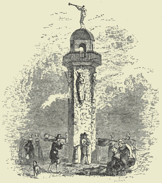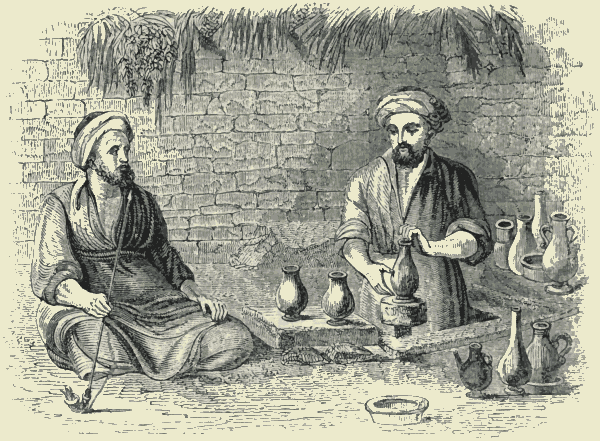 There are some occupations of the streets, however, which remain essentially the same, though the form be somewhat varied. The sellers of food are of course amongst these. "Hot peascods," and hot sheep's-feet, are not popular delicacies, as in the time of Lydgate. "Hot wardens," and "Hot codlings," are not the "cries" which invite us to taste of stewed pears and baked apples. But we have still apples hissing over a charcoal fire; and potatoes steaming in a shining apparatus, with savoury salt-butter to put between the "fruit" when it is cut; and chestnuts roasted; and greasy sausages, redolent of onions and marjoram; and crisp brown flounders; and the mutton-pie-man, with his "toss for a penny." Rice-milk, furmety, barley-broth, and saloop are no longer in request. The greatest improvement of London in our own day has been[Pg 412] the establishment of coffee-shops, where the artisan may take his breakfast with comfort, and even with luxury; where a good breakfast may be had for three-pence; where no intoxicating liquors are sold; and where the newspapers and the best periodical works may be regularly found.