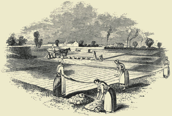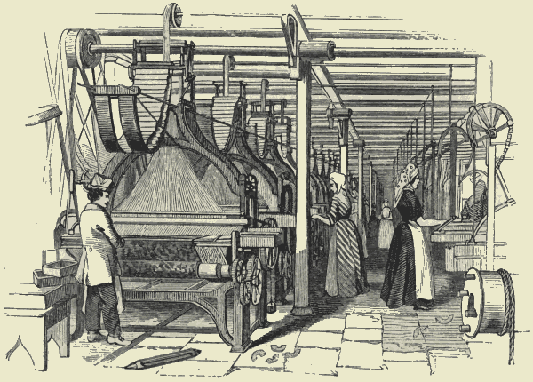 The woollen manufacture—Divisions of employment—Early history—Prohibitory laws—The Jacquard loom—Middle-age legislation—Sumptuary laws—The silk manufacture—Ribbon-weaving—The linen manufacture—Cloth-printing—Bleaching233