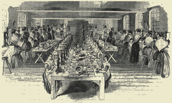 The process which has been steadily going on amongst us for increasing the demand for skill and trustworthiness has no doubt produced a diminution of the funds for employ in which neither skill nor trust is required. Thus a great amount of suffering is constantly presented to our view, which benevolence has set about relieving, in our time, with a zeal which shows how fully it is acknowledged that the great principle, to "Love one another," is not to evaporate in sentiment, but is to be ripened in action. As a nation,[Pg 402] England was never indifferent to the command, "Feed the hungry." The art of Flaxman has shown this "act of mercy" in its most direct form. But the "understanding heart" has discovered that many of the miseries of society may be relieved by other modes as effectually as by alms-giving, and perhaps much more effectually. Whether some of these efforts may be misdirected, in no degree detracts from the value of the principle which seeks the prevention of misery rather than the relief. One of the most obvious forms in which misery has presented itself in our large cities, and especially in London, has arisen from the competition amongst labour which may be called unskilled, because there are a numerous unemployed body of labourers at hand to do the same work, in which there is no special skill. This was the case with the sempstresses of London; and the famous 'Song of the Shirt' struck a note to which there was a responding chord in every bosom. But the terrible evils of the low wages of shirt-making would not have been relieved by an universal agreement of the community to purchase none but shirts that, by their price, could afford to give higher wages to the shirt-makers. The higher wages would have infallibly attracted more women and more children to the business of shirt-making. The straw-platters, the embroiderers, the milliners would have rushed to shirt-making; and, unless there had been a constantly-increasing rate of price charged to the wearers of shirts, and therefore a constant forced contribution to the capital devoted to shirt-making, the payment to one shirt-maker would have come to be divided amongst two; and the whole body, thus doubled by a rate of wages disproportioned to the rate of other labour requiring little peculiar skill, would have been in a worse condition in the end than in the beginning.