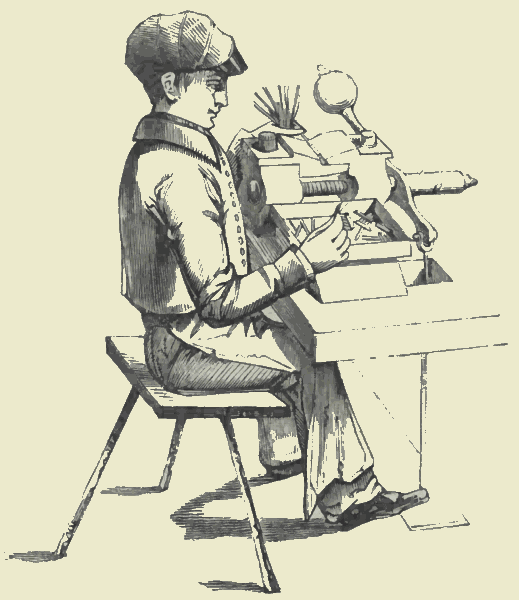 Labour-saving contrivances—The nick in Types—Tags of laces—Casting shot—Candle-dipping—Tiring a wheel—Globe-making—Domestic aids to labour—Aids to mental labour—Effects of severe bodily labour on health and duration of life276