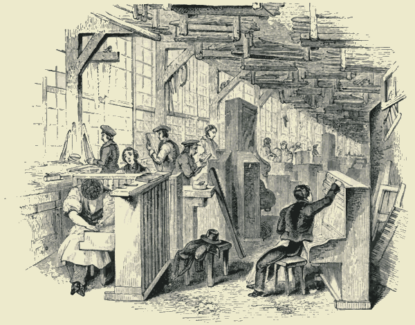The miseries that are so frequently resulting from the competition of unskilled labour are also results from what we will venture to call uncapitalled labour, attempting to unite wages with profits. Upon a large scale, the miseries of Ireland, which finally collapsed in the terrible famine, were produced by labour trenching upon the functions of capital without possessing capital. In 1847 there were in Ireland five hundred thousand acres of land in more than three hundred thousand holdings, thus supplying the only means of maintenance to three hundred thousand male labourers and their families, but averaging little more than an acre and a half to each tenant. There are not more than nine hundred thousand labourers and farmers to the twenty-five million cultivated acres in England and Wales—about one labourer to every thirty-eight acres, and about one farmer capitalist to every hundred and ten acres. Nor is the effect of uncapitalled and unskilled labour—for uncapitalled labour is for the most part unskilled—less remarkable[Pg 405] in manufactures than in agriculture. Many are familiar with the minute details of low wages and suffering—of the oppressions attributed to masters and middle-men—which are contained in a series of papers by Mr. Henry Mayhew, published in 'The Morning Chronicle' in 1849-50, under the title of 'London Labour, and London Poor.' Nothing could be more laudable than the general object of these papers, which, in the preface to a collected edition of a portion of them, was "to give the rich a more intimate knowledge of the sufferings, and the frequent heroism under these sufferings, of the poor;" and to cause those "of whom much is expected, to bestir themselves to improve their condition." But, at the same time, it would be difficult to say how the condition of particular classes of these sufferers was to be improved, except by such general efforts as would raise up the whole body of the people in knowledge and virtue, and by directing the labours of those who, without skill or capital, were struggling against skill and capital, into courses of industry more consonant with the great modes of productiveness all around them. One example may illustrate our meaning—that of "the garret-masters of the cabinet-trade." The writer we have mentioned says that wages had fallen 400 per cent. in that trade, between 1831 and 1850; but he also says that the trade was "depressed by the increase of small masters—that is to say, by a class of workmen possessed of just sufficient capital to buy their own materials, and to support themselves while making them up." Taking the whole rate of wages,—the payment to the unskilled as well as the skilled workmen—it would be difficult not to believe that the average reduction was quite as great as represented. A cabinet-maker tells this tale:—