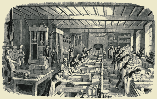 Hosiery manufacture—The stocking-frame—The circular hosiery-machine—Hats—Gloves—Boots and shoes—Straw-plat—Artificial flowers—Fans—Lace—Bobbin-net machine—Pins—Needles—Buttons—Toys—Lucifer-matches—Envelopes255