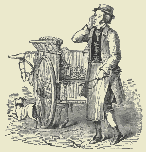 The costermonger is a travelling shopkeeper. We encounter him not in Cornhill, or Holborn, or the Strand: in the neighbourhood of the great markets and well-stored shops he travels not. But his voice is heard in some silent streets stretching into the suburbs; and there his donkey-cart stands at the door, as the dingy servant-maid cheapens a bundle of cauliflowers. He has monopolized all the trades that were anciently represented by such "London cries" as "Buy my artichokes, mistress;" "Ripe cowcumbers;" "White onions, white St. Thomas' onions;" "White radish;" "Ripe young beans;" "Any baking pears;" "Ripe speragas." He would be indignant to encounter such petty chapmen interfering with his wholesale operations. Mr. Mayhew says that "the regular or thoroughbred costermongers repudiate the numerous persons who only sell nuts or oranges in the streets." No doubt they rail against these inferior competitors, as the [Pg 408]city shopkeepers of the sixteenth and seventeenth centuries railed against itinerant traders of every denomination. In the days of Elizabeth, they declare by act of common council, that in ancient times the open streets and lanes of the city have been used, and ought to be used, as the common highway only, and not for hucksters, pedlers, and hagglers, to stand and sit to sell their wares in, and to pass from street to street hawking and offering their wares. In the seventh year of Charles I. the same authorities denounce the oyster-wives, herb-wives, tripe-wives, and the like, as "unruly people;" and they charge them, somewhat unjustly as it must appear, with "framing to themselves a way whereby to live a more easy life than by labour."