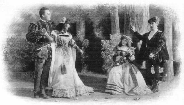 And speaking of dramatis personae, Mr. Major tells how, soon after his book was published, his morning mail brought him an interesting letter from a prominent New York manager, pointing out the dramatic possibilities of When Knighthood was in Flower and asking for the right to produce it. While this letter was still under consideration, a telegram was received at the Shelbyville office which read: "I want the dramatic rights to When Knighthood was in Flower." It was signed "Julia Marlowe." Mr. Major felt that this was enough for one morning, so he escaped to Indianapolis, and after a talk with his publishers, left for St. Louis and answered Miss Marlowe's telegram in person. At the first interview she was enthusiastic and he was confident. She gave him a box for the next night's performance, which Miss Marlowe arranged should be "As You Like It." After the play the author was enthusiastic and the actress confident.
