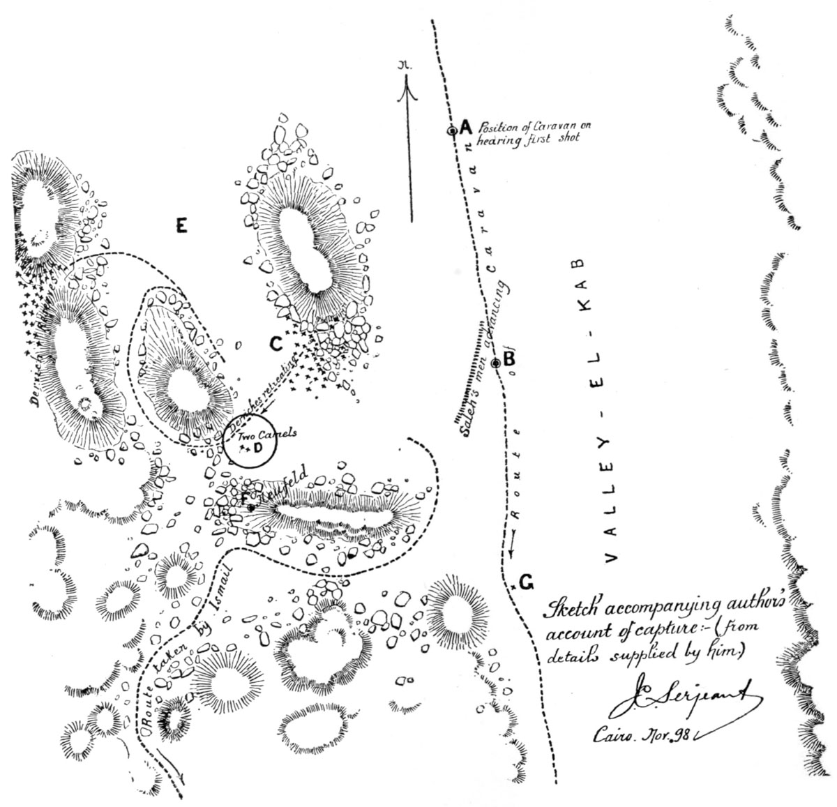 Different routes over the desert—A quarrel amongst the guides—Scouts sent out—Hassan convicted of error—Zigzagging in the desert—A council of war—Surprised by the dervishes—The fight—Taken prisoners . . . 15–28