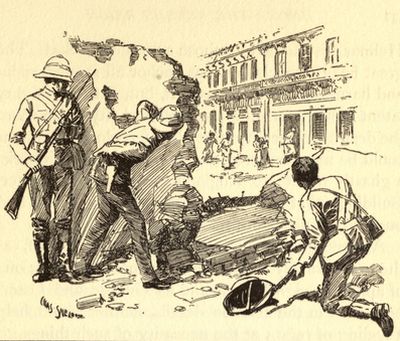 Helmar seated himself on a flour barrel, and Charlie propped himself on an ammunition box.