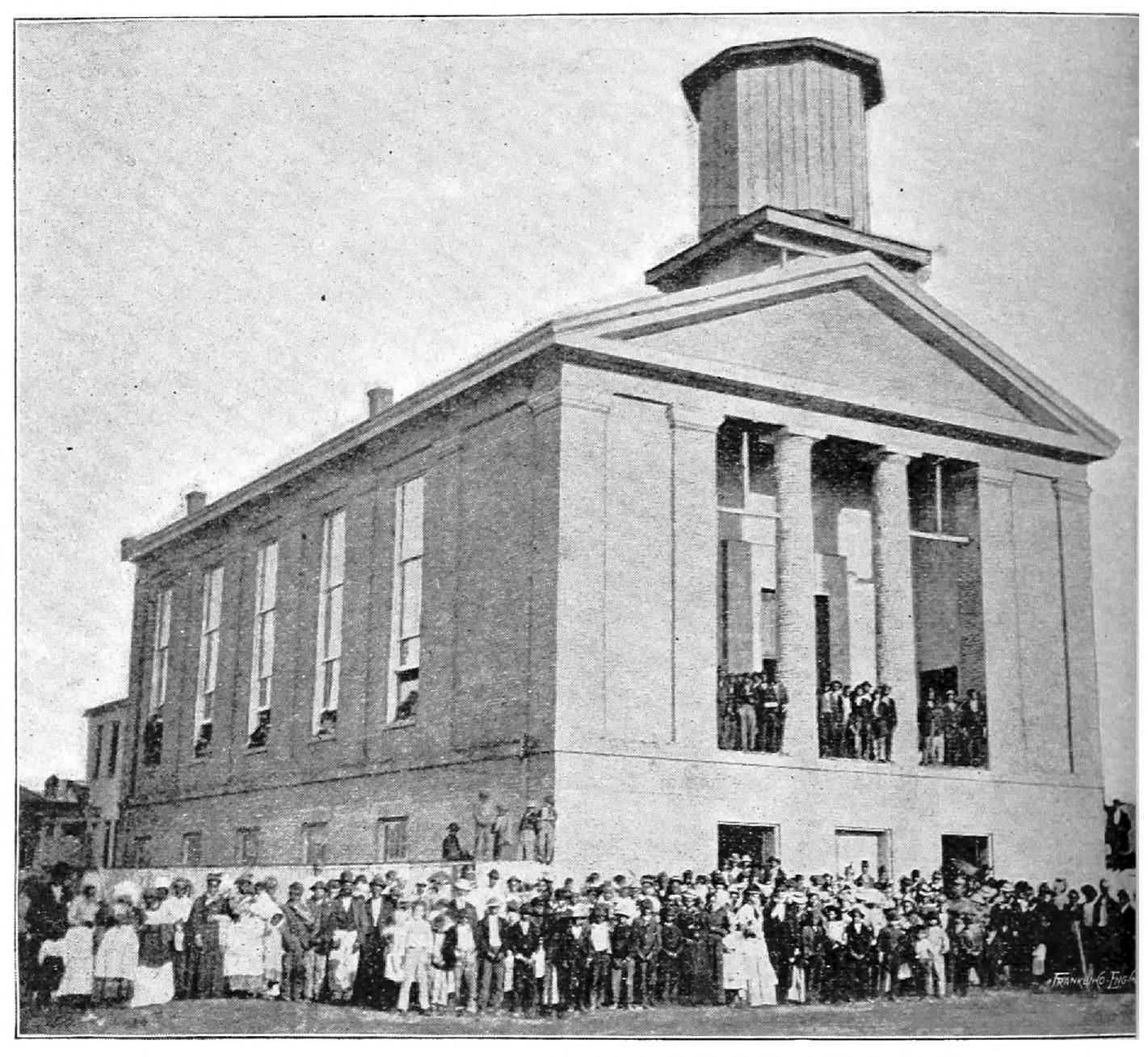 This church was for many years especially noted for its missionary enterprise. To this church Alabama owes many of her pioneer preachers. The late Rev. Charles Leavens, who was pastor just after the close of the war, sought to send a pioneer, an organizer, into every section of the State. Their present house of worship cost, I am told, about $24,000, and is a two-story brick structure. Since the war their pastors have been: Revs. Charles Leavens, I. Grant, A. Butler, C. C. Richardson, and the present occupant, Rev. Mr. Frazier. This church seems now in full sympathy with its past missionary record, over which no one rejoices more than the writer, since it is from this church that he, under God, received his commission to preach the gospel of the Son of Righteousness.