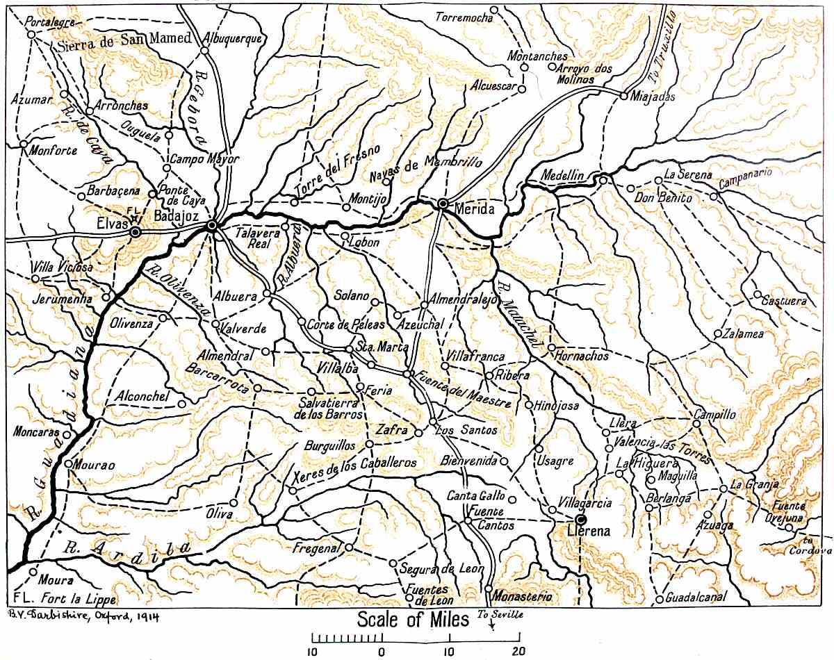 [763] They marched from Cabeza del Buey, on the borders of Andalusia and Estremadura, via Talarubia and Mazarambros to Herencia. ‘Journal of Regiment of Leon,’ in Clonard, vol. iv.