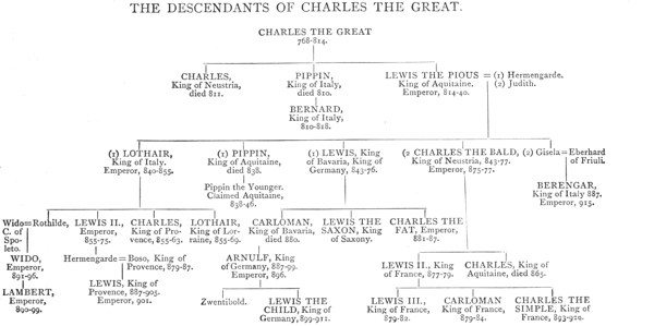 A word ought, perhaps, to be added on the vexed question of the spelling of proper names. I have always chosen the most modern form in speaking of places, but in speaking of individuals I have employed that used by contemporary authorities, save in the case of a few very well known names, such as Charles, Henry, Gregory, Lewis, where archaism would savour of pedantry.