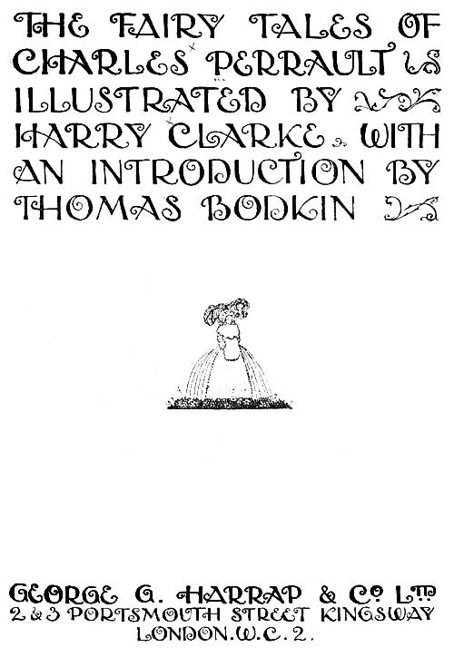 It is, perhaps, unnecessary for me to add anything about[20] Mr Clarke's illustrations. Many of the readers of this book will be already familiar with his work. Besides, I always feel that it is an impertinence to describe pictures in their presence. Mr Clarke's speak for themselves. They speak for Perrault too. It is seldom, indeed, that an illustrator enters so thoroughly into the spirit of his text. The grace, delicacy, urbanity, tenderness, and humour which went to the making of Perrault's stories must, it seems, have also gone in somewhat similar proportions to the making of these delightful drawings. I am sure that they would have given pleasure to Perrault himself.