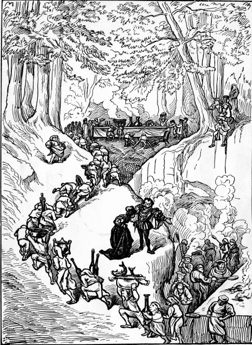 She no sooner reached the fountain than she saw coming out of the wood, a magnificently dressed lady, who came up to her, and asked to drink. This was the same fairy who had appeared to her sister, but she had now taken the air and dress of a princess, to see how far this girl's rudeness would go.