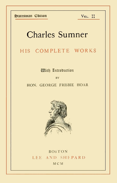 This was another attempt to expose Slavery before a promiscuous audience at a time when the subject was too delicate to be treated directly. Mr. Sumner commenced in the course at Boston, and afterwards gave the substance of his Lecture before many of the Lyceums of Massachusetts. Professedly historical in character, and carefully avoiding any discussion of slavery in our country, it escaped "censure," although jealous defenders of compromise were disturbed. Others were pleased to find their sentiments against slavery represented in the lecture-room.