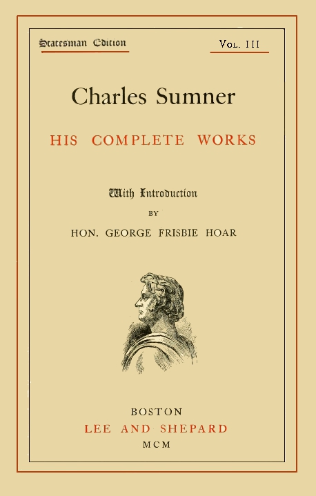 In the course of the proceedings, speeches were made by Anson Burlingame, Esq., Hon. Charles F. Adams, Hon. Charles Allen, Hon. Edward L. Keyes, and James A. Briggs, Esq., of Ohio. From the committee of which he was chairman Mr. Sumner reported an Address to the People of Massachusetts, explaining and vindicating the Free-Soil movement, with a series of Resolutions, all of which were unanimously adopted by the Convention. Of this Address, which became the authorized declaration of the party, the Daily Republican remarked: "The Address, prepared by that gifted scholar and writer, Charles Sumner, is an elaborate, complete, and unanswerable vindication of the principles embodied in the Resolutions. Clear, logical, and triumphant in argu[7]ment, it glows with the warm and genial spirit of love for humanity which distinguishes all the productions of its author."