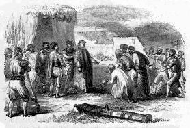 From the same authority I draw another narrative of singular success in achieving freedom. Several Englishmen, being captured and carried into Algiers, were sold as slaves. These are the words of one of their number: "We were hurried like dogs into the market, where, as men sell hacknies in England, we were tossed up and down to see who would give most for us; and although we had heavy hearts, and looked with sad countenances, yet many came to behold us, sometimes taking us by the hand, sometimes turning us round about, sometimes feeling our brawny and naked armes, and so beholding our prices written in our breasts, they bargained for us accordingly, and at last we were all sold." Shortly afterwards several were put on board an Algerine corsair to serve as slaves. One of them, John Rawlins, who resembled Cervantes in the hardihood of his exertions for freedom,—as, like him, he had lost the use of an arm,—arranged a rising or insurrection on board. "O hellish slavery," he said, "to be thus subject to dogs! O God! strengthen my heart and hand, and something shall be done to ease us of these mischiefs, and deliver us from these cruel Mohammedan dogs. What can be worse? I will either attempt my deliverance at one time or another, or perish in the enterprise." An auspicious moment was seized; and eight English slaves and one French, with the assistance of four Hollanders, freemen, succeeded, after a bloody contest, in overpowering fifty-two Turks. "When all was done," the story proceeds, "and the ship cleared of the dead bodies, Rawlins assembled his men together, and with one consent gave the praise unto God, using the accustomed service on shipboard, and, for want of books, lifted up their voices to God, as he put into their hearts or renewed their memories; then did they sing a psalm, and, last of all, embraced one another for playing the men in such a deliverance, whereby our fear was turned into joy, and trembling hearts exhilarated that we had escaped such inevitable dangers, and especially the slavery and terror of bondage worse than death itself. The same night we washed our ship, put every thing in as good order as we could, repaired the broken quarter, set up the biticle, and bore up the helme for England, where, by God's grace and good guiding, we arrived at Plimouth, February 17th, 1622."73