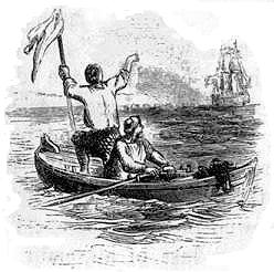 There is also, in the same early source, a quaint description of what occurred to a ship from Bristol, captured, in 1621, by an Algerine corsair. The Englishmen were all taken out except four youths, over whom the Turks, as these barbarians were often called by early writers, put thirteen of their own men to conduct the ship as a prize to Algiers; and one of the pirates, a strong, able, stern, and resolute person, was appointed captain. "These four poor youths," so the story proceeds, "being thus fallen into the hands of merciless infidels, began to study and complot all the means they could for the obtayning of their freedom. They considered the lamentable and miserable estates that they were like to be in, as to be debarred forever from seeing their friends and country, to be chained, beaten, made slaves, and to eat the bread of affliction in the galleys, all the remainder of their unfortunate lives, and, which was worst of all, never to be partakers of the heavenly word and sacraments. Thus, being quite hopeless, and, for any thing they knew, forever helpless, they sailed five days and nights under the command of the pirates, when, on the fifth night, God, in his great mercy, showed them a means for their wished-for escape." A sudden wind arose, when, the captain coming to help take in the mainsail, two of the English youths "suddenly took him by the breech and threw him overboard; but, by fortune, he fell into the bunt of the sail, where, quickly catching hold of a rope, he, being a very strong man, had almost gotten into the ship again; which John Cook perceiving, leaped speedily to the pump, and took off the pump brake, or handle, and cast it to William Long, bidding him knock him down, which he was not long in doing, but, lifting up the wooden weapon, he gave him such a palt on the pate, as made his braines forsake the possession of his head, with which his body fell into the sea." The corsair slave dealers were overpowered. The four English youths drove them "from place to place in the ship, and having coursed them from poop to the forecastle, they there valiantly killed two of them, and gave another a dangerous wound or two, who, to escape the further fury of their swords, leaped suddenly overboard to go seek his captain." The other nine Turks ran between decks, where they were securely fastened. The English now directed their course to St. Lucas, in Spain, and "in short time, by God's ayde, happily and safely arrived at the said port, where they sold the nine Turks for galley slaves, for a good summe of money, and as I thinke, a great deal more than they were worth."72 "He that shall attribute such things as these," says the ancient historian, grateful for this triumph of freedom, "to the arm of flesh and blood, is forgetful, ungrateful, and, in a manner, atheistical."
