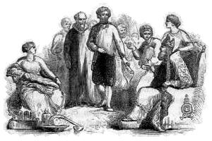 Slavery extended, with new rigors, under the military dominion of Rome. The spirit of freedom which animated the republic was of that selfish and intolerant character which accumulated privileges upon the Roman citizen, while it heeded little the rights of others. But, unlike the Greeks, the Romans admitted in theory that all men were originally free by the law of nature; and they ascribed the power of masters over slaves not to any alleged diversities in the races of men, but to the will of society.13 The constant triumphs of their arms were signalized by reducing to captivity large crowds of the subjugated people. Paulus Emilius returned from Macedonia with an uncounted train of slaves, composed of persons in every department of life; and at the camp of Lucullus, in Pontus, slaves were sold for four drachmæ, or seventy-two cents, a head. Terence and Phædrus, Roman slaves, have, however, taught us that genius is not always quenched, even by a degrading captivity; while the writings of Cato the Censor, one of the most virtuous slaveholders in history, show the hardening influence of a system which treats human beings as cattle. "Let the husbandman," says Cato, "sell his old oxen, his sickly cattle, his sickly sheep, his wool, his hides, his old wagon, his old implements, his old slave, and his diseased slave; and if any thing else remains, let him sell it. He should be a seller, rather than a buyer."14