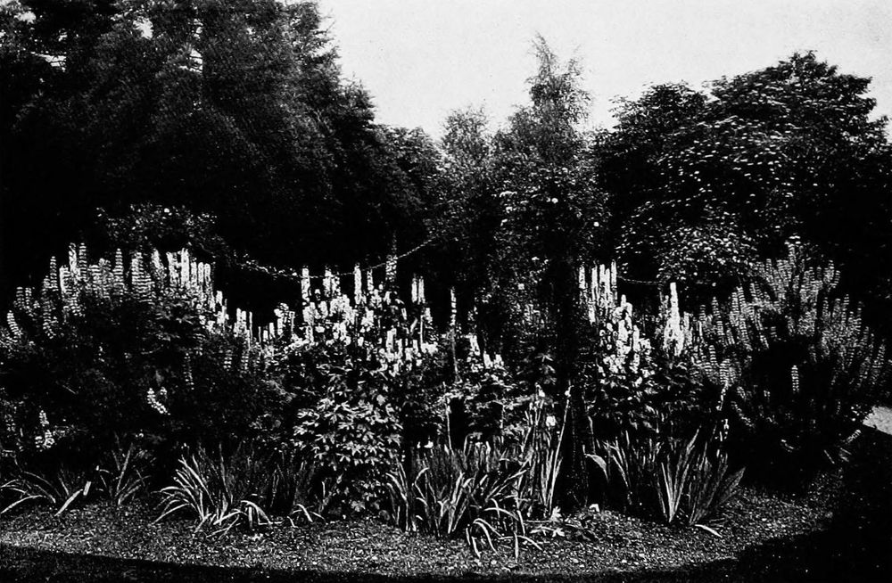 The variety obtainable by the judicious employment of living trees and plants is so infinite, that there is no excuse for neglecting their friendly aid when planning the several parts of the garden. A certain spirit of conservatism seems to prevail among modern gardeners, and of the thousands of beautiful subjects which exist for our benefit, not a tithe of the number are pressed into service. Take, for example, that large and beautiful family, the Flowering Shrubs, how very imperfectly is their value[18] realised in the majority of cases! Dull, gloomy evergreens are used almost exclusively in the orthodox small garden, and never a thought is given to the host of fine deciduous trees, many of which are supremely lovely. The nurseryman has learnt by experience the few stereotyped evergreens which are most in demand, and he stocks these, and these only, so that the casual purchaser is led to believe that the list of trees and shrubs suitable for English gardens is very limited. For screening off unsightly corners evergreens are of the highest value, but on the margins of lawns, and for lending interest to mixed plantations, the designer would do well to introduce the flowering shrubs, of which a list is given later in the book.