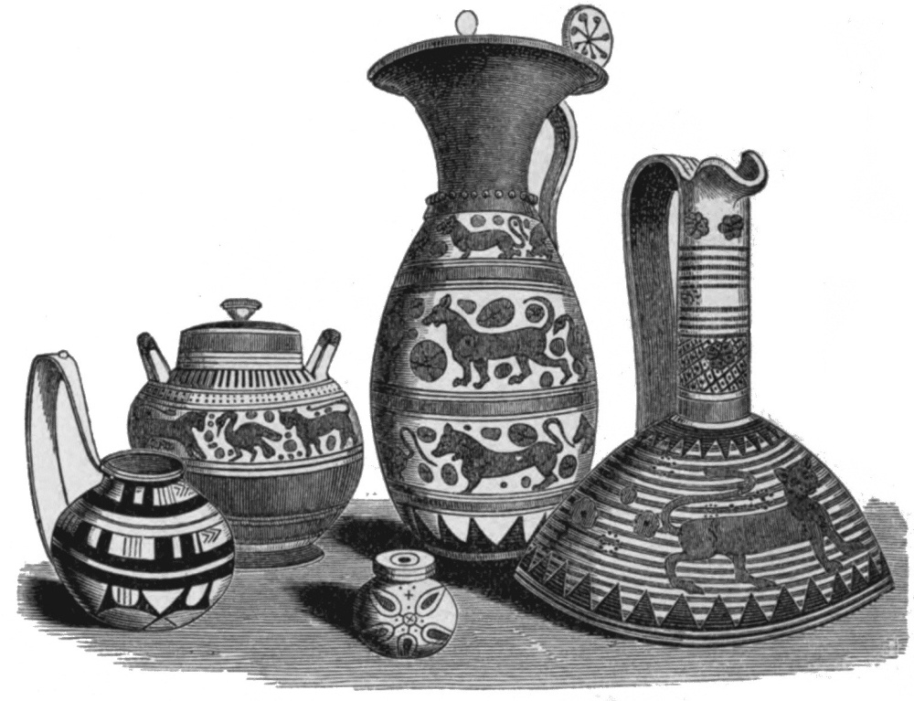 Palaces of Homer’s Heroes.—The Ceramicus at Athens.—Egyptian Pottery.—Etruscan Tombs.—Good and Bad Vases.—Age of Vases.—Various Styles.—The Archaic Style.—The Fine Style.—Beauty a Birthright.—Aspasia’s House.—Names of Vases.—The Cup of Arcesilaus.—Number of Extant Vases.—Their Uses.—The Greek Houses.—Greek Women.—Greek Men.—The Hetairai.—Etruscan Vases | |