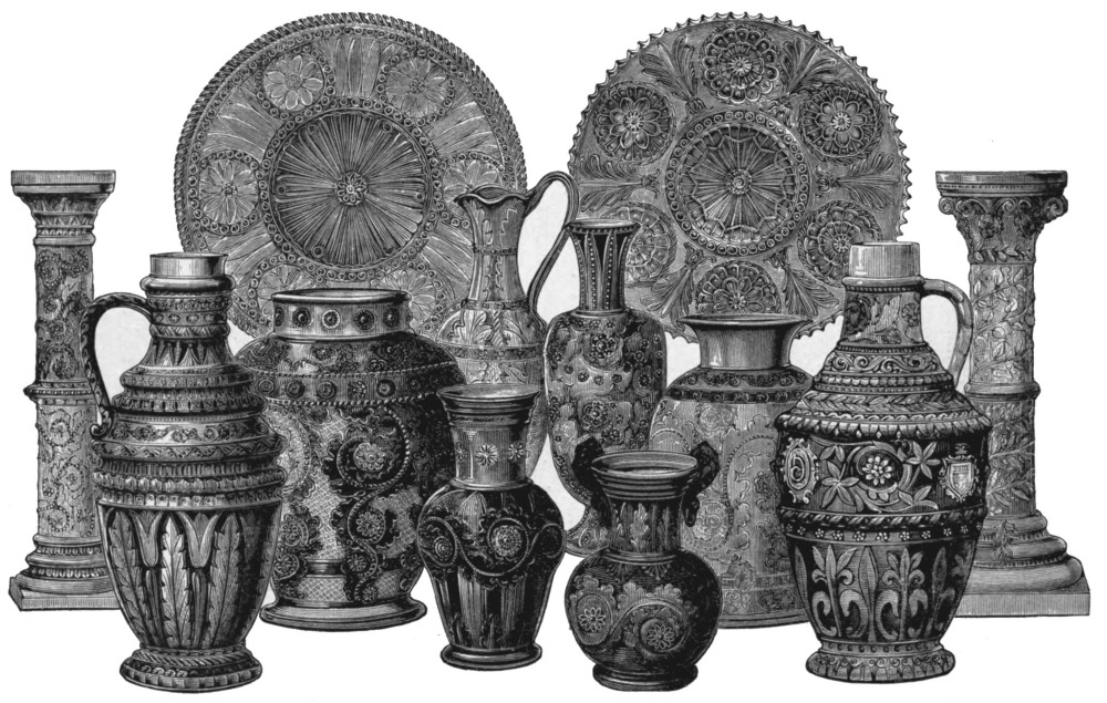 Unglazed Water-Colors.—Clay Sketches.—Japanese Clay Figures.—Spanish Pots.—Italian Peasant Pottery.—Egyptian.—Turkish.—Mexican.—Watcombe Terra-cotta.—Copenhagen Pottery | |