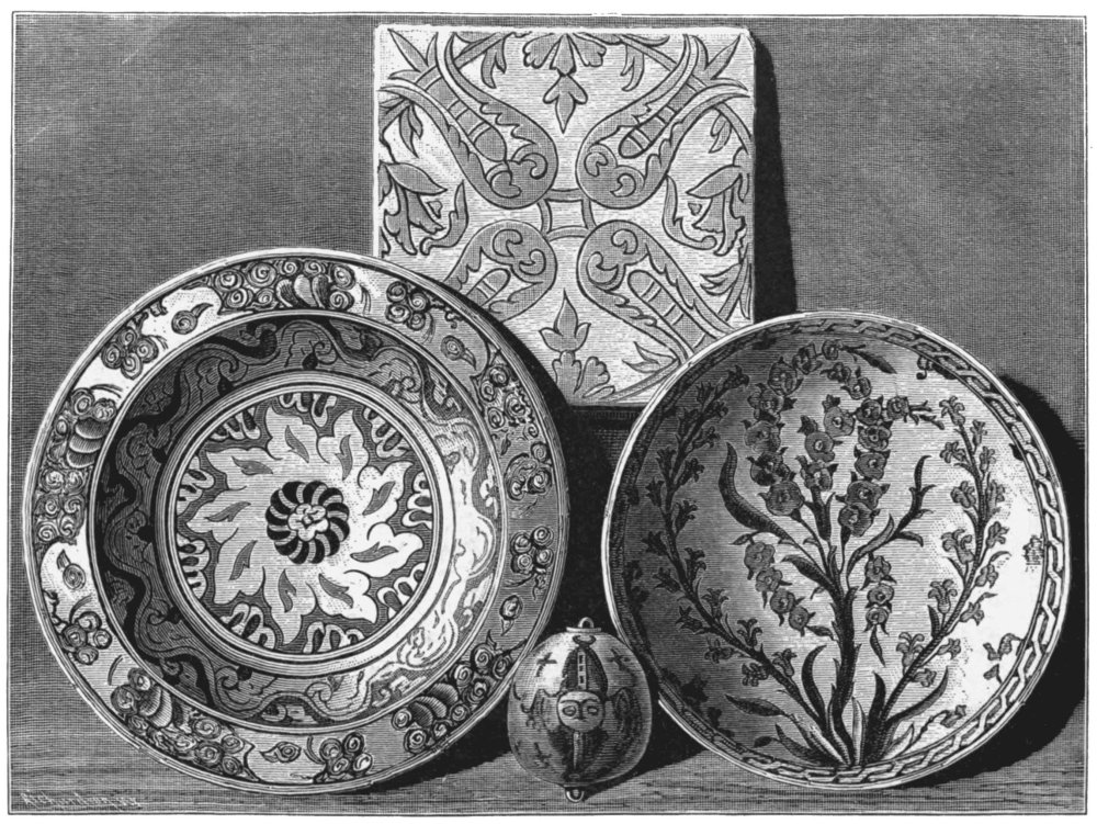 The Arabs in Spain.—Cordova, Granada, Seville.—Enamel and Lustres.—Hispano-Moresque.—The Alhambra.—Tiles.—Vase of the Alhambra.—Malaga.—Majorca and Maiolica.—Rhodian Pottery.—Damascus Pottery.—Persian and Arabic Pottery.—Persian Porcelain.—Persian and Arabic Tiles | |