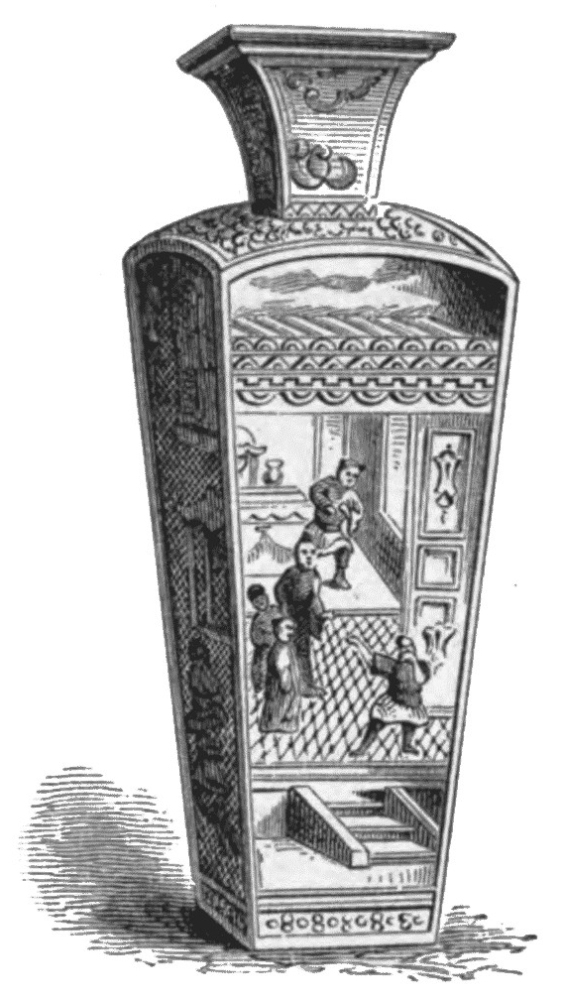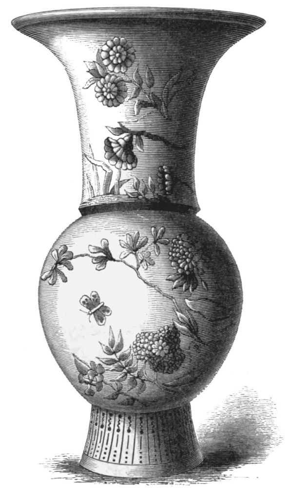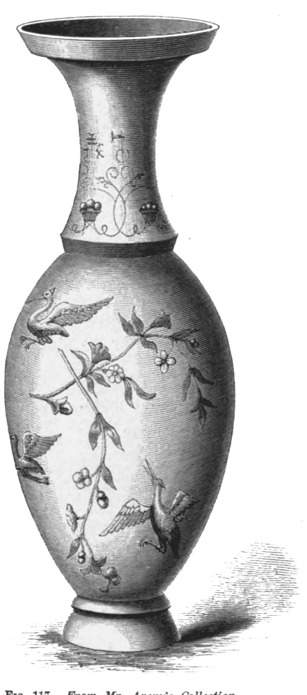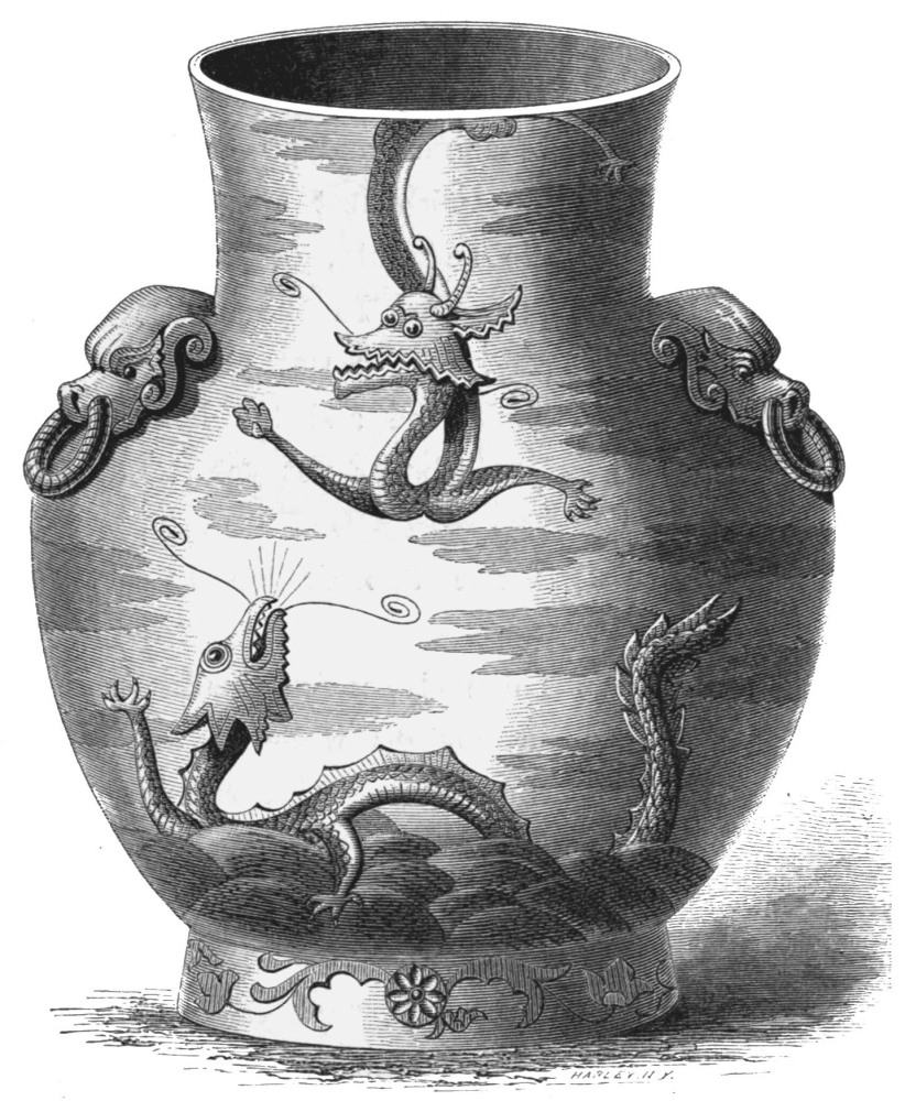 Mrs. Anson Burlingame’s collection of Chinese porcelain, at Cambridge, made while in China, is not large, but it has in it some of the best examples of the “green,” the “celestial blue,” the “rose,”{7} and the “chrysanthemum.” Some of these have been exhibited in the Loan Collection in Boston.