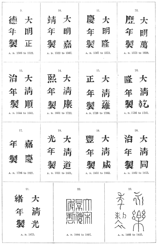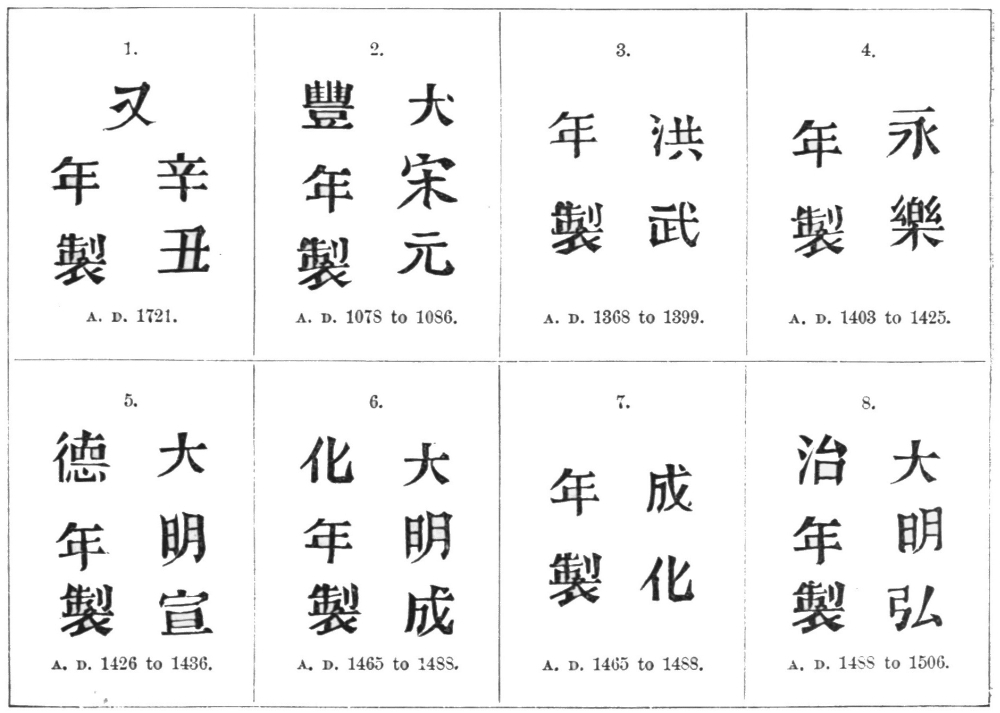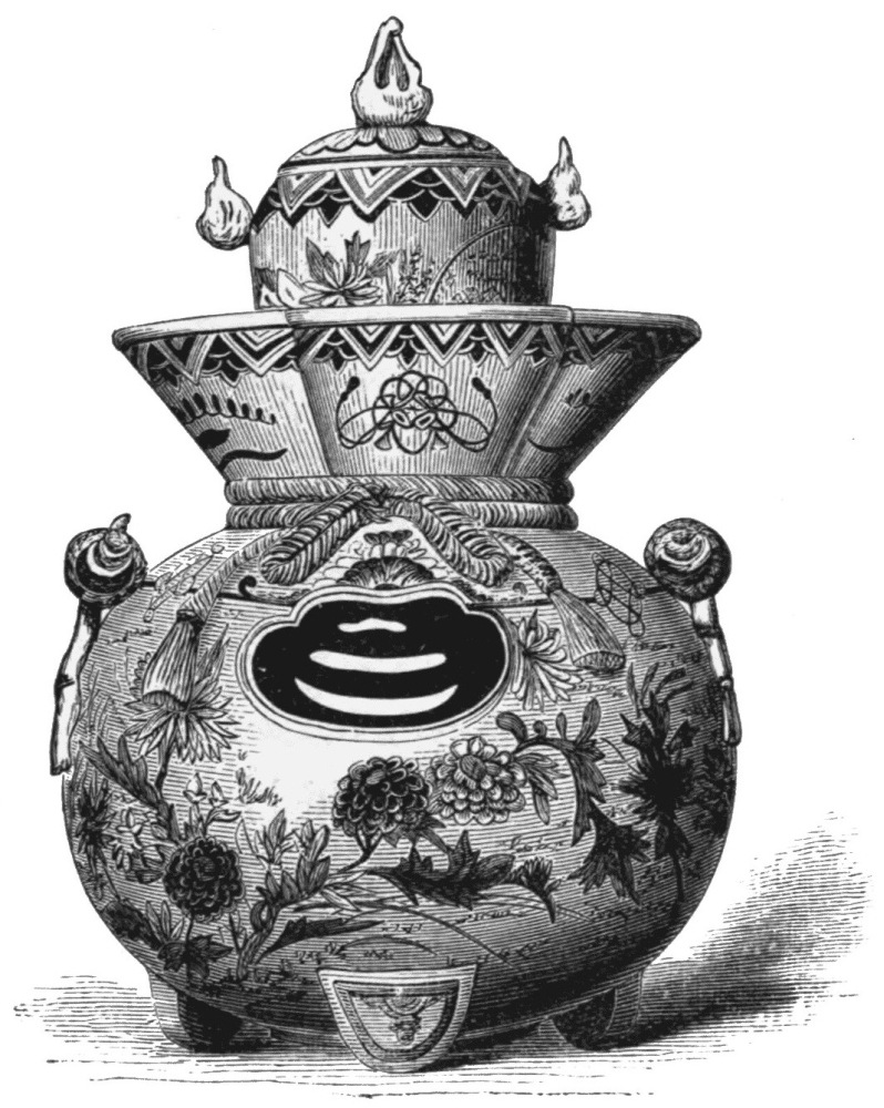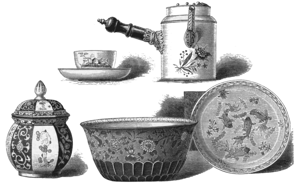 Corean Porcelain.—Katosiro-ouye-mon.—The Province of Idsoumi.—Styles prevailing in Japan.—Marks.—Japanese Blue.—Indian Porcelain.—Dutch East India Company.—Egg-shell and Crackle.—Mandarin China.—Kaga Ware.—Satsuma Ware.—Japanese Art.—The Philadelphia Exhibition | |