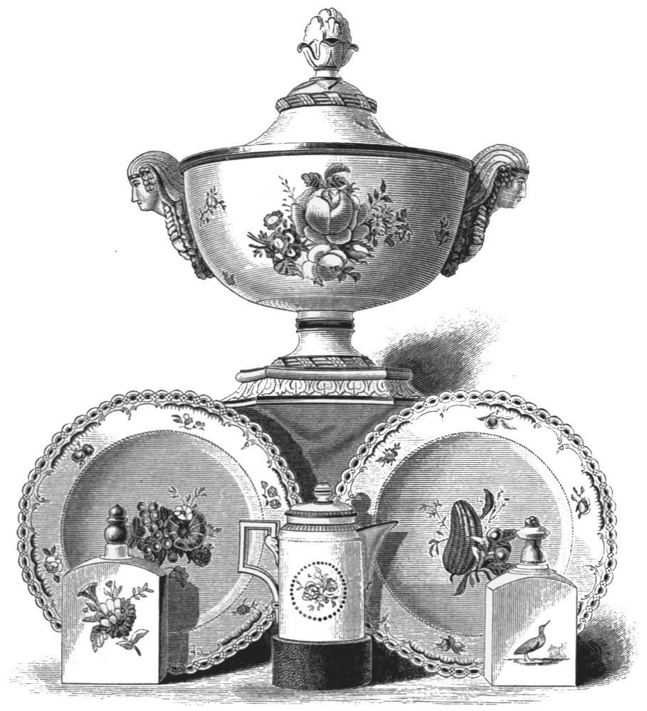 The First Porcelain made here.—Bonnin and Morris.—Franklin Institute.—William Ellis Tucker.—Tucker and Hemphill.—Thomas Tucker.—General Tyndale.—Porcelain of T. C. Smith and Sons.—Early Advertisements.—Josiah Wedgwood.—Lord Sheffield’s Report.—Alexander Hamilton’s Report.—History of Norwich.—Samuel Dennis, New Haven.—Isaac Hanford, Hartford.—Gallatin’s Report.—The “Washington Pitchers.”—Lyman and Fenton, Vermont.—Rouse and Turner, New Jersey.—Potteries at Trenton.—In Ohio.—The Centennial Exhibition | |