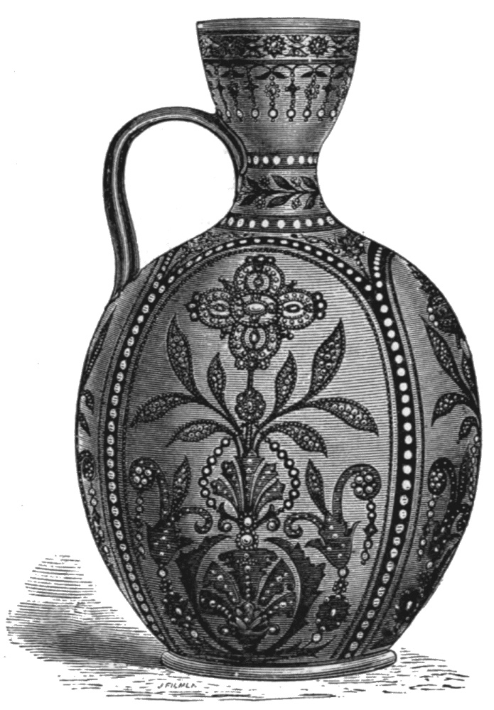 Definition of Glaze.—Varnish.—Enamel in Egypt, Babylon.—The Arabs and the Moors.—Grès de Flandre.—Cologne, Regensburg, Baireuth, Neuwied, Grenzhausen, Coblentz.—Holland.—Beauvais.—Flanders.—Apostle-Mugs.—Graybeards.—“Bellarmines.”—“Pottle-Pots.”—Modern Work.—Doulton Stone-ware.—Early German Stone-ware at Breslau.—Hirschvogel.—Nuremberg{10} | |