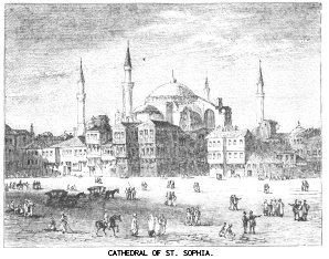 The Turks began the attack in the early morning, and the fight raged all day; but they were the most numerous, and kept thronging into the breach, so that, though Constantine fought like a lion at bay, he could not save the place, and the last time his voice was heard it was crying out, “Is there no Christian who will cut p. 324off my head?” The Turks pressed in on all sides, cut down the Christians, won street after street, house after house; and when at last Mahommed rode up to the palace where Roman emperors had reigned for 1100 years, he was so much struck with the desolation that he repeated a verse of Persian poetry—