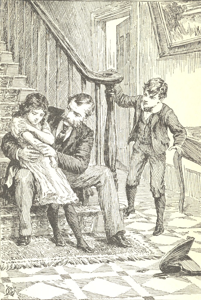 There was a little silence; then Lady Jane nervously caught her brother’s hand, saying, “O Giles, Giles, you must not be severe with her, poor little thing!”